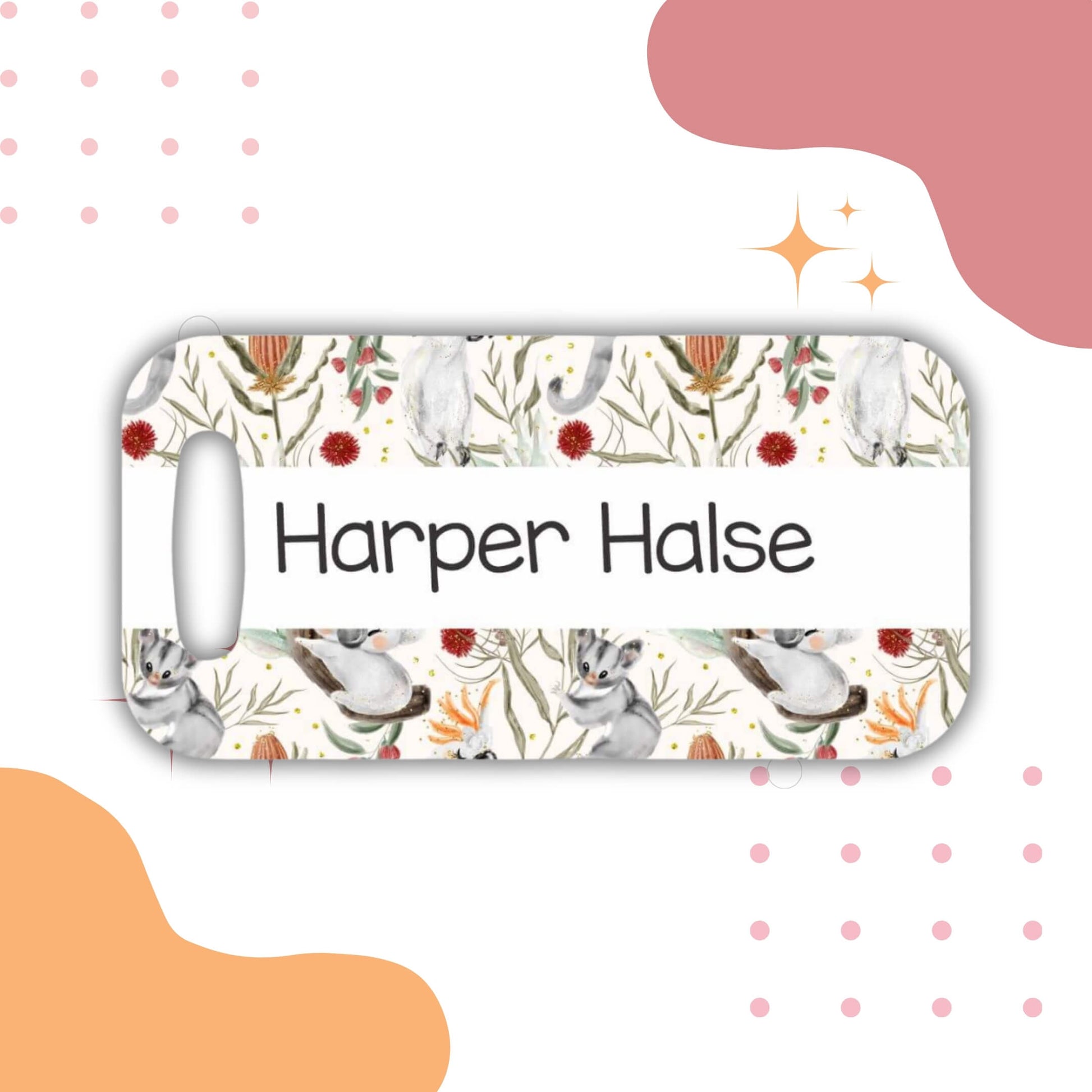 Our bag tags are printed onto each side to sturdy aluminium which are fade and scratch resistant. Attach them to anything you can think of, bag, lunch bag or luggage bag.